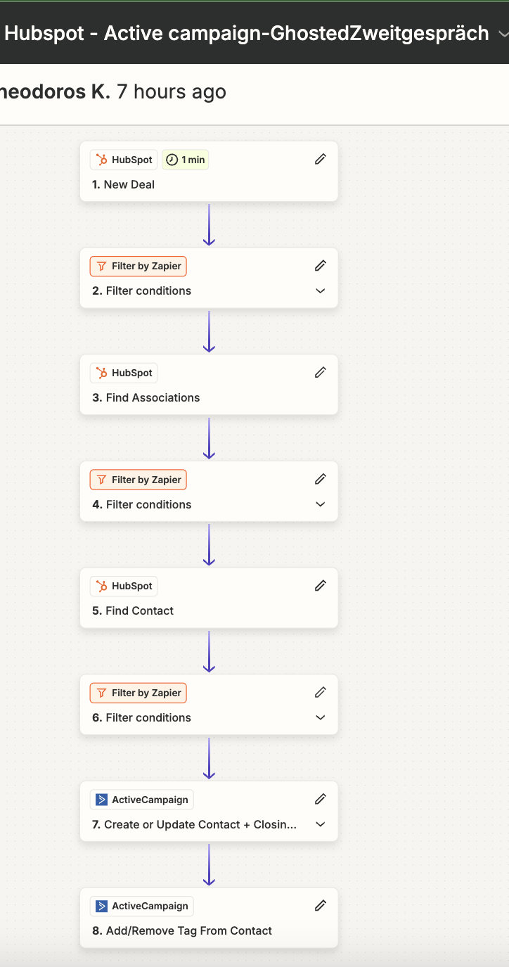 Every time a sales rep closed a deal in HubSpot, they had to export deal details, locate or create the corresponding contact in ActiveCampaign, and then manually apply tags reflecting deal stage, value, or product line. This process took about 20–30 minutes per week and often resulted in missing tags or outdated contact fields in ActiveCampaign.